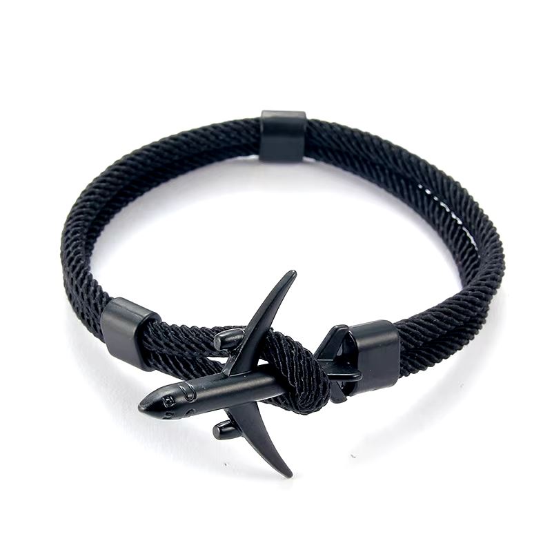 Do you love airplanes and traveling? This Bracelet is the perfect daily motivation. This bracelet is made of matt dark metal.