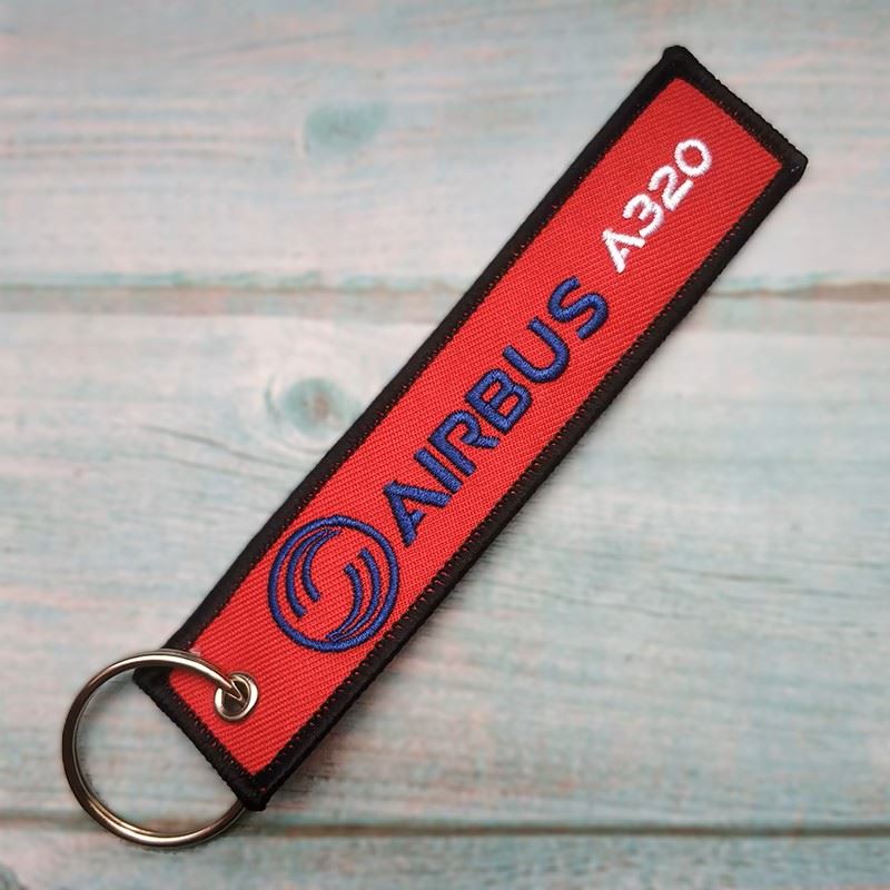 New and very popular key chain is made from woven textile. On one side you can find high quality embroidered “AIRBUS A320” and "REMOVE BEFORE FLIGHT" on second. Supplied with a split ring.