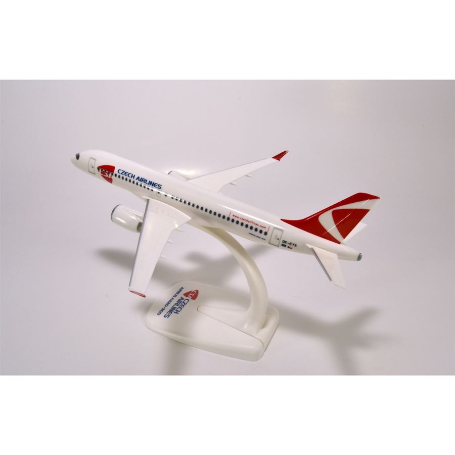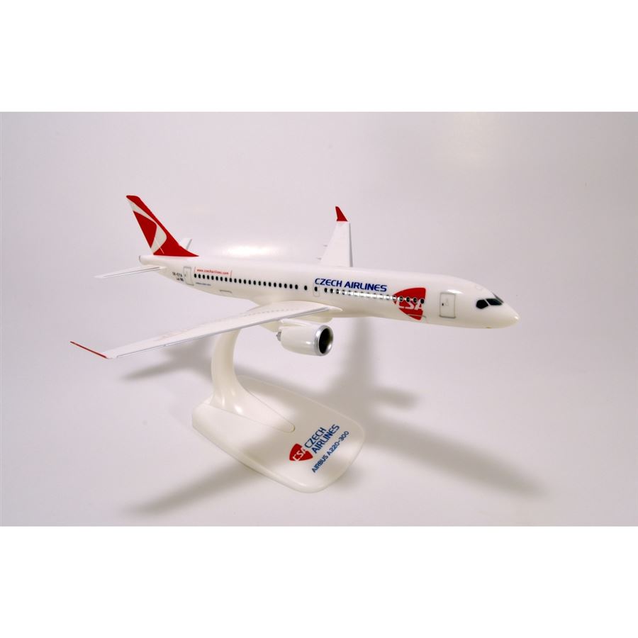 Model of airliner Airbus A220-300 (BD-500-1A11) designed in CSA Czech Airlines "2019" colors and with reg. OK-EYA. A plastic airplane model, known as snap-fit. It is a partially assembled, pre-painted model. Assembly is simple, without the need for glue. The model does not include an undercarriage but comes with a stand for easy display.