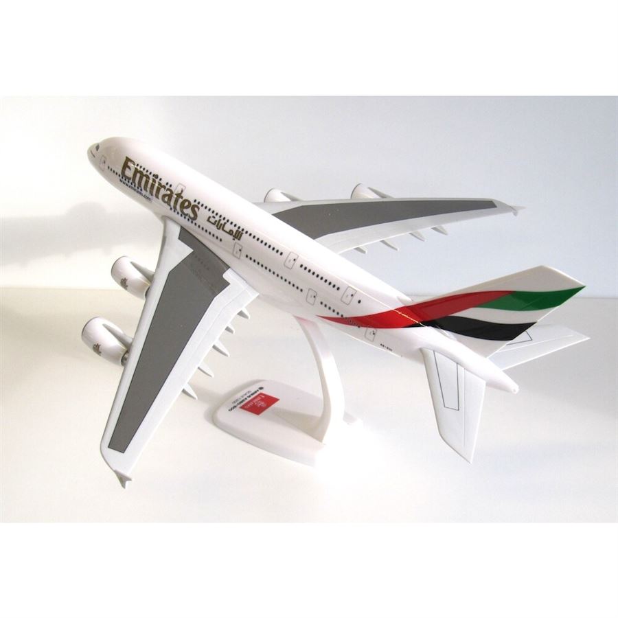 Plastic (SnapFit) model of airliner Airbus A380-861 designed in Emirates "2010s" colors and with reg. A6-EUI.