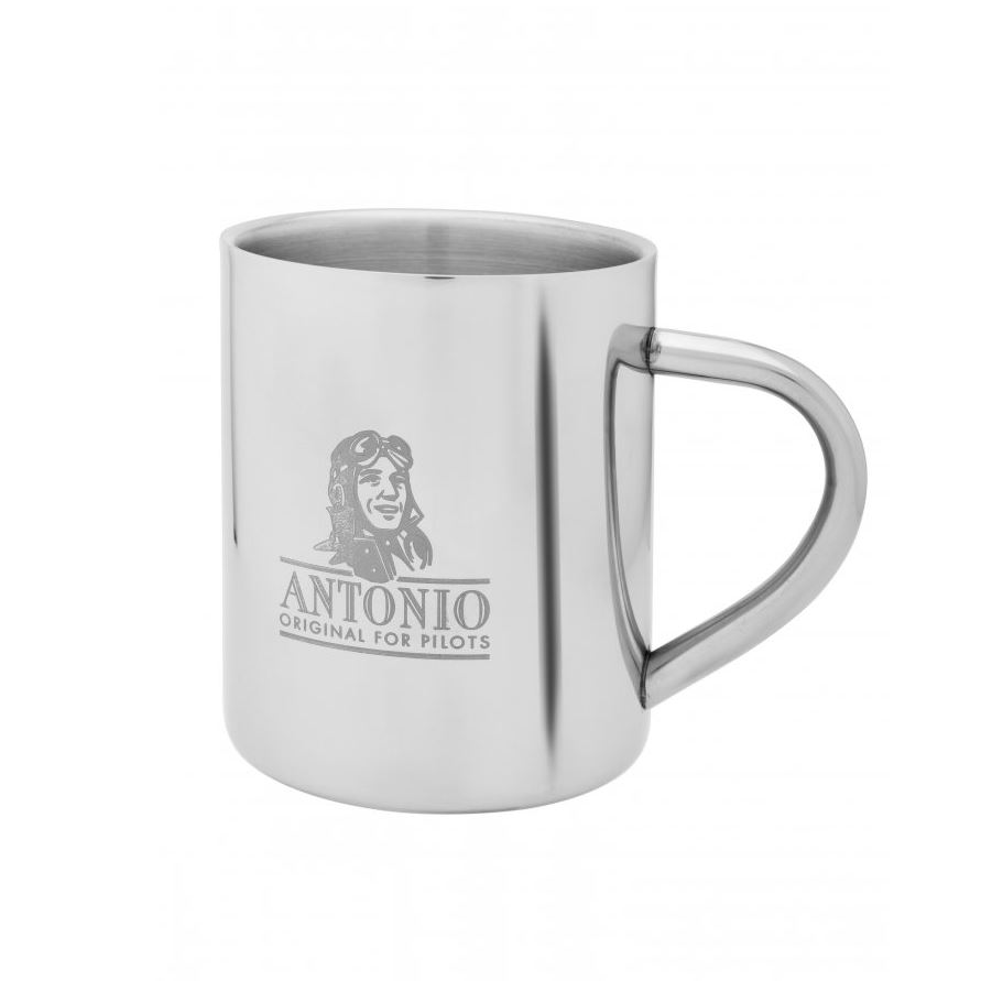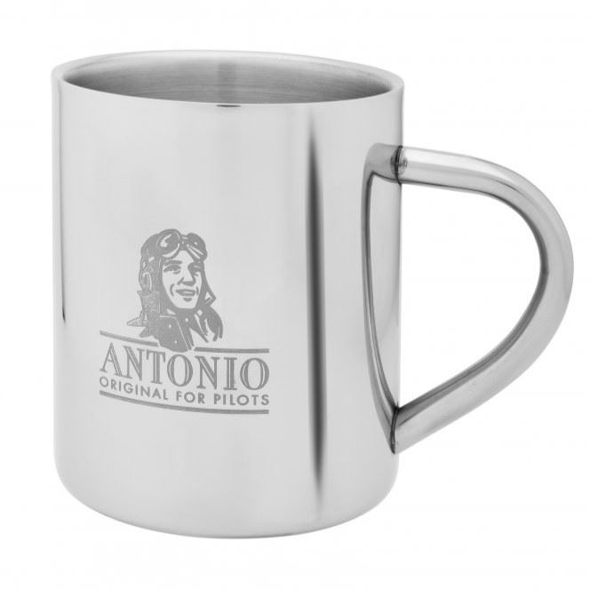 Termohrnek ANTONIO z nerezové oceli. Každý milovník letectví potřebuje před letem šálek kávy. Tento termohrnek je vhodný jako dárek pro všechny milovníky letectví.