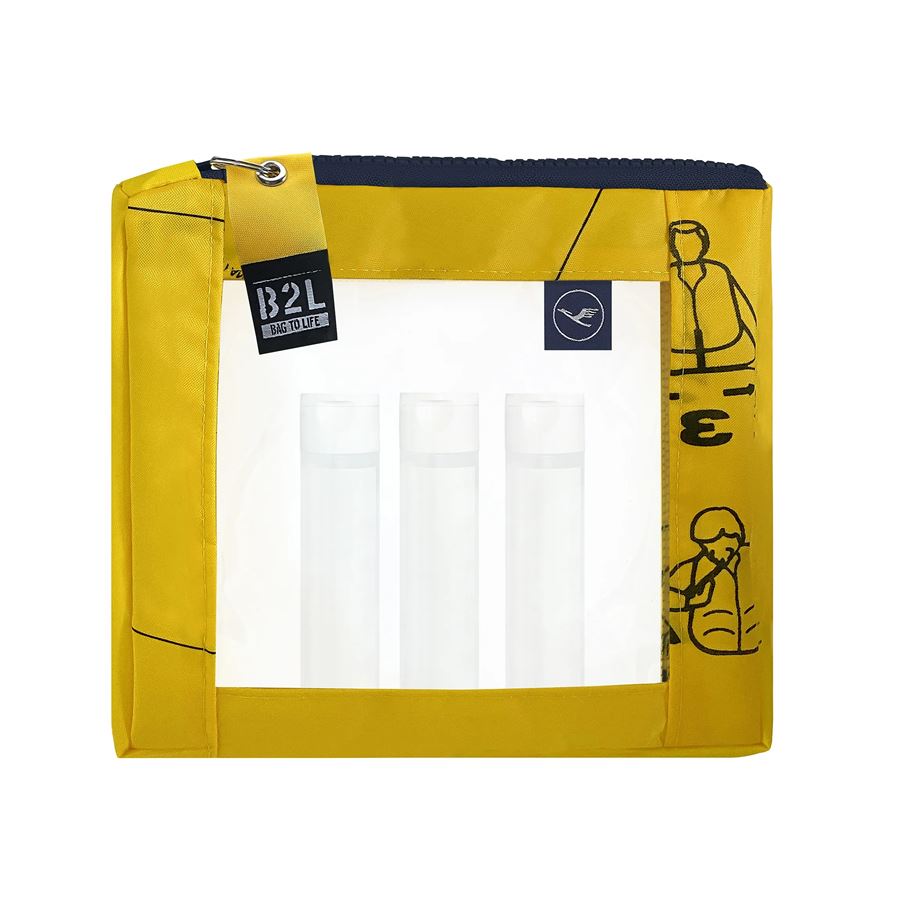 Průhledná fólie umožňuje maximální viditelnost kosmetiky, toaletních potřeb nebo cestovních nezbytností. Modrý zip dodává výrazný akcent, zatímco logo Lufthansy je začleněno do vysoce kvalitní tkané etikety – decentní, odolná a elegantní.