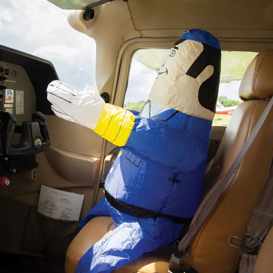 You never know when you'll need a co-pilot, and our Otto the Inflatable Pilot is always ready to lend a hand. Otto is easily inflated by his built-in pump by using the included USB cord so you can bring him in your car, airplane, on the golf course or in your office. For faster inflation, Otto includes a wall adapter plug for a second option. When not in use, Otto deflates just as easily for convenient storage.