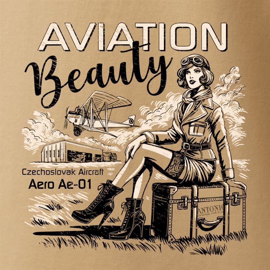 Obdivujeme krásu letectví. Dokonalé stroje, dokonalé křivky, nevšední podívanou zespoda i zeshora. Československé letadlo Aero Ae-01 a krása letectví vyobrazená na tričku.