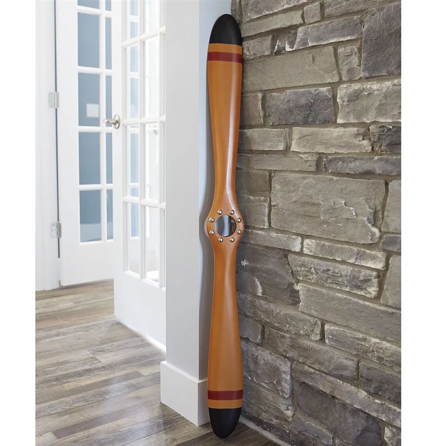 Tato krásná Vintage vrtule je ručně vyrobena ze dřeva a má ručně malované černé špičky doprovázené červeným pruhem, které kopírují dřevěné vrtule z počátků letectví. Uprostřed vrtule jsou chromované cvočky pro simulaci šroubů. Vrtule má na zadní straně přidělaný držák pro uchycení na zeď.Originální dekorace pro Váš interiér!Rozměry:cca 117 cm x 11 cm x 3 cm