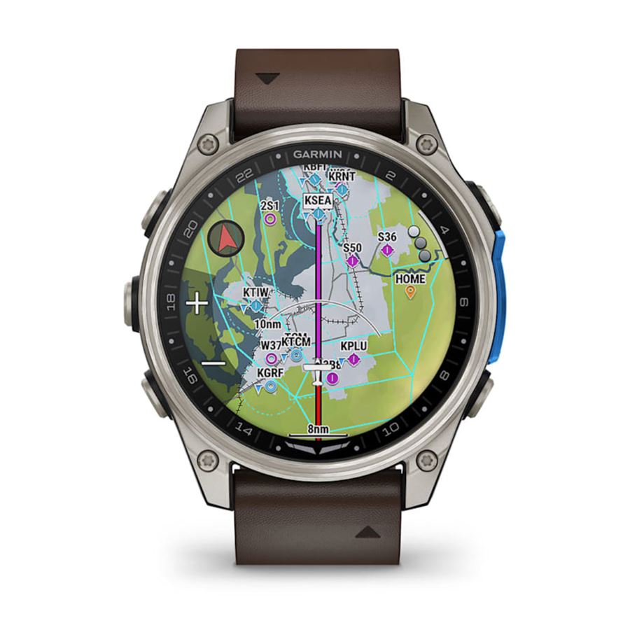 Pokročilé barevné pohyblivé mapy zobrazují vzdušné prostory, ranveje, letiště, letový plán a další — poskytují tak nejlepší a nejpodrobnější mapování, jaké kdy Garmin v pilotních hodinkách nabídl.