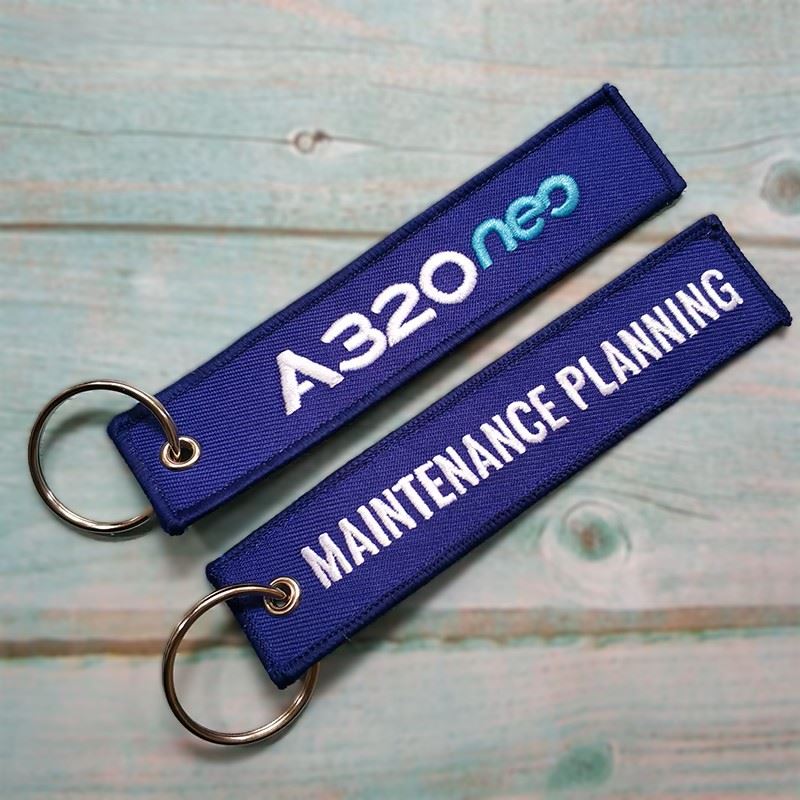 Stylové klíčenky pro piloty a fanoušky letectví vyrobené ze tkané textilie. Na jedné straně klíčenky je kvalitně vyšitý nápis A320 NEO a na druhé MAINTENANCE PLANNING. Nové a velmi populární klíčenky. Dodává se se split kroužkem.Velikost:130 mm dlouhá