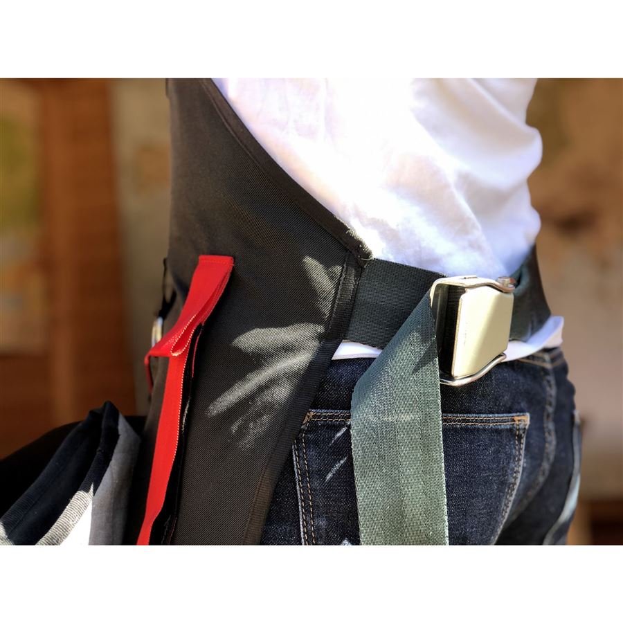 Při výrobě této kuchyňské zástěry se myslelo nejen na praktičnost, ale také na recyklaci a udržitelné zdroje. Zapínání grilovací zástěry je vyrobeno z originální letecké přezky. Vzhledem k tomu, že každý kus je originál, existují u každého produktu mírné rozdíly v designu..