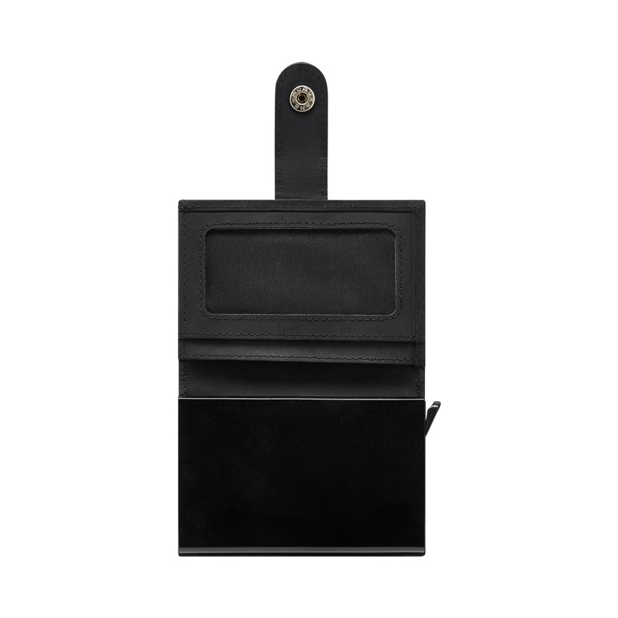 Cestujte jednoduše s tímto klasickým koženým pouzdrem na karty s vyraženým logem Flying Bulls na přední straně pro stylový minimalistický vzhled. Pásek se zapínáním zajistí, že vaše karty zůstanou bezpečně uložené. Elegantní kožené pouzdro z nové kožené kolekce Onyx od Red Bullu.